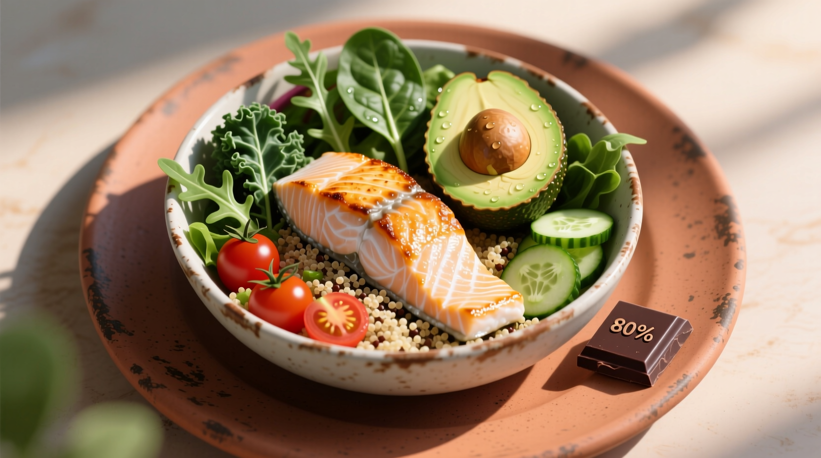 - Жёсткие ограничения в еде. Полный отказ от углеводов или любимых продуктов приведёт к срыву. Используйте принцип «80/20»: 80% рациона — полезная еда, 20% — то, что душе угодно. Жизнь должна быть в радость, даже в январе.