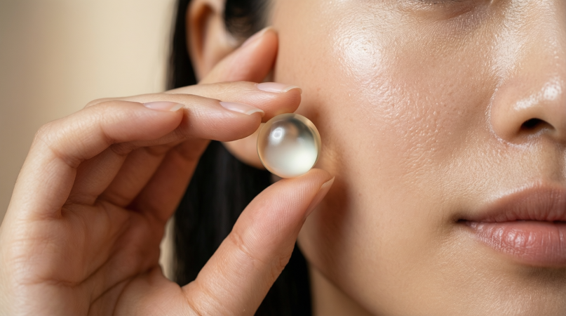- Антиоксиданты (Дигидрокверцетин, Витамины C и E): Это защитники клеток от повреждений, которые ведут к преждевременному старению. Витамины С и Е работают в синергии, усиливая друг друга. А такой компонент, как дигидрокверцетин (природный флавоноид), считается одним из мощнейших антиоксидантов, способствующих укреплению капилляров и улучшению микроциркуляции, что напрямую влияет на цвет лица.