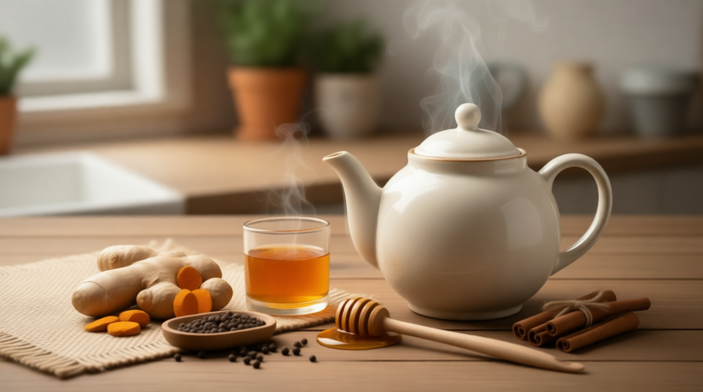 Имбирный чай с куркумой — тут есть хитрость. Черный перец добавлять обязательно! Без него куркумин почти не усваивается. Сам сначала не верил, пока не посмотрел исследования по биодоступности.
